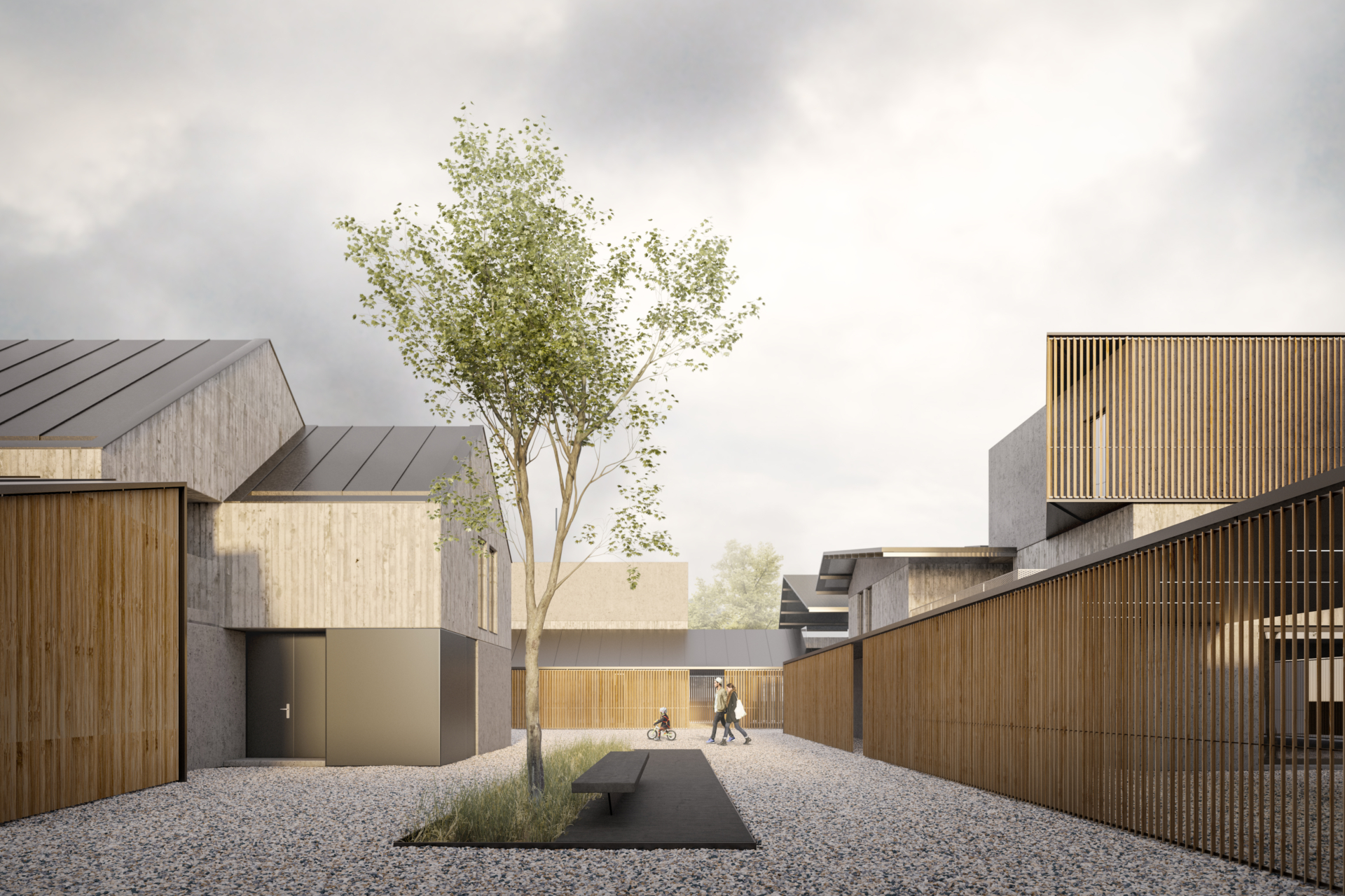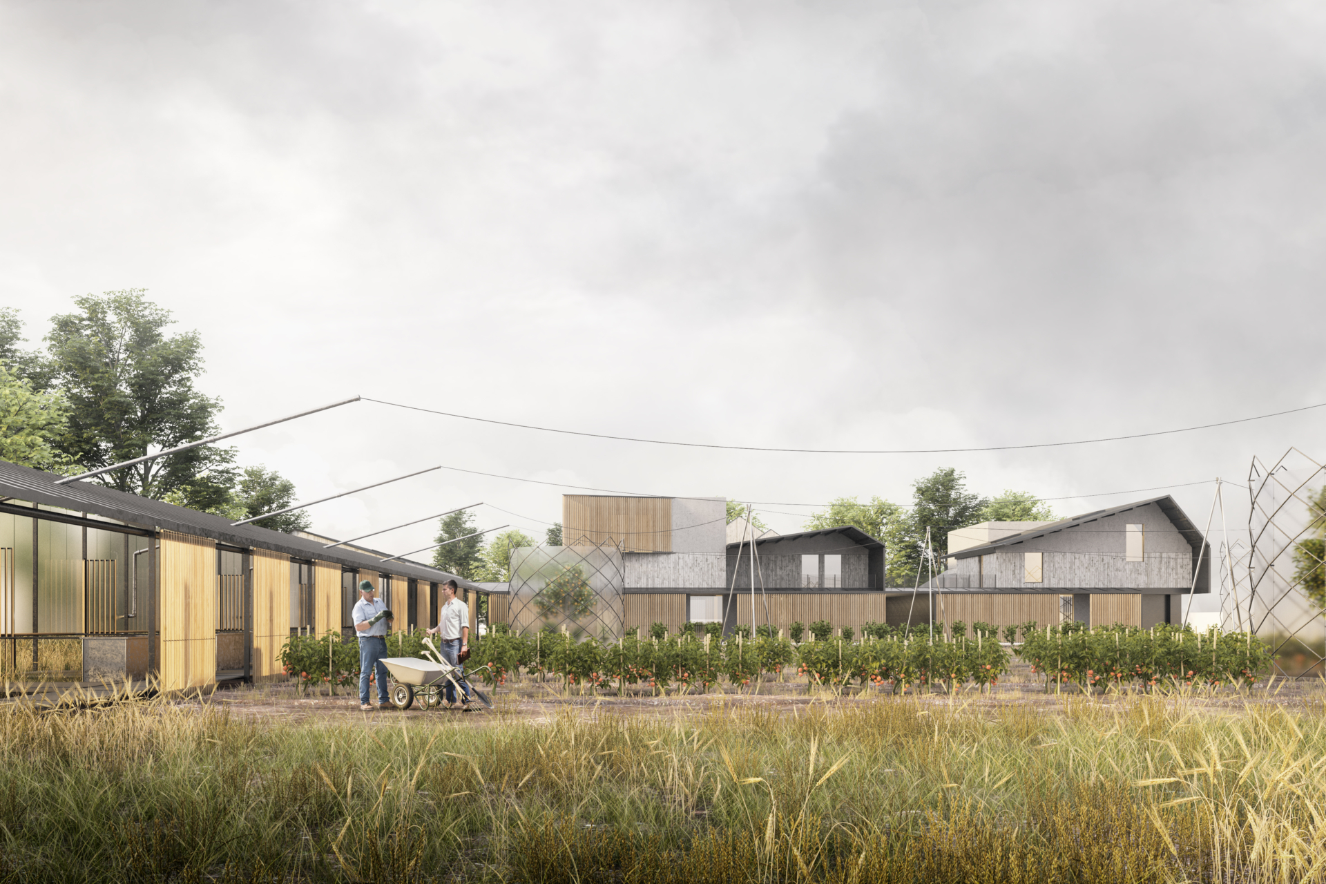 L’area agricola è contigua al lotto edificato in otto residenze realizzate con sistemi costruttivi a secco (acciaio e legno). L’area si sviluppa per circa 4000m², suddivisa in otto aree coltivabili tra outdoor e indoor con l’utilizzo di serre. L’Agricoltura 4.0, con l’utilizzo dei sistemi automatizzati per la coltivazione diventa l’obbiettivo concreto per l’auto-generazione dei prodotti diretti e coltivati “nell’orto di casa”.