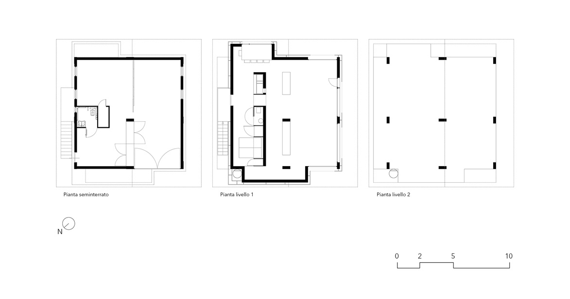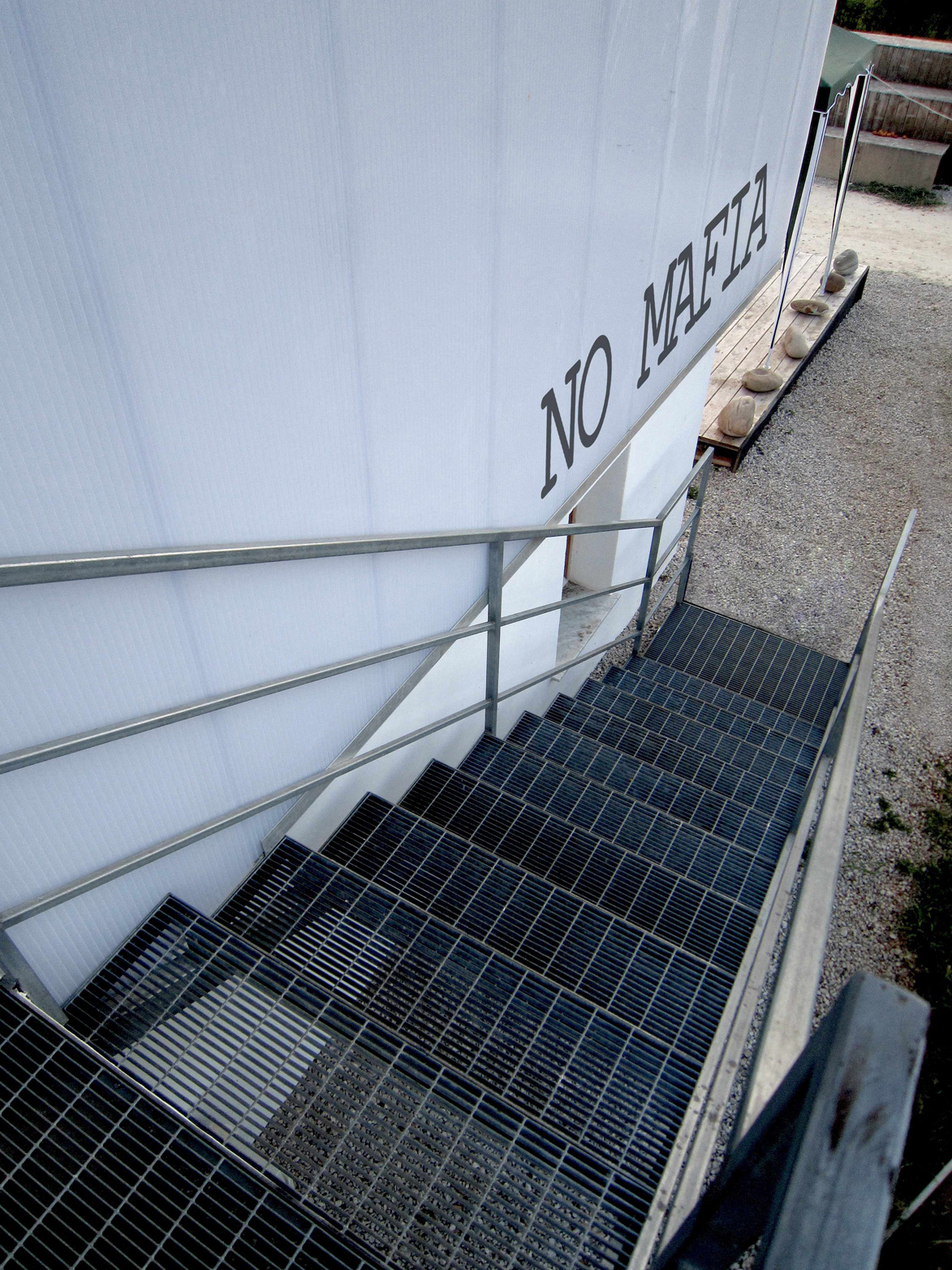Il livello 2, volutamente “incompleto”, definisce la volumetria dell’edificio come testimone di una memoria cui è legato il luogo, teatro di eventi e personaggi indissolubilmente legati alla Mafia.